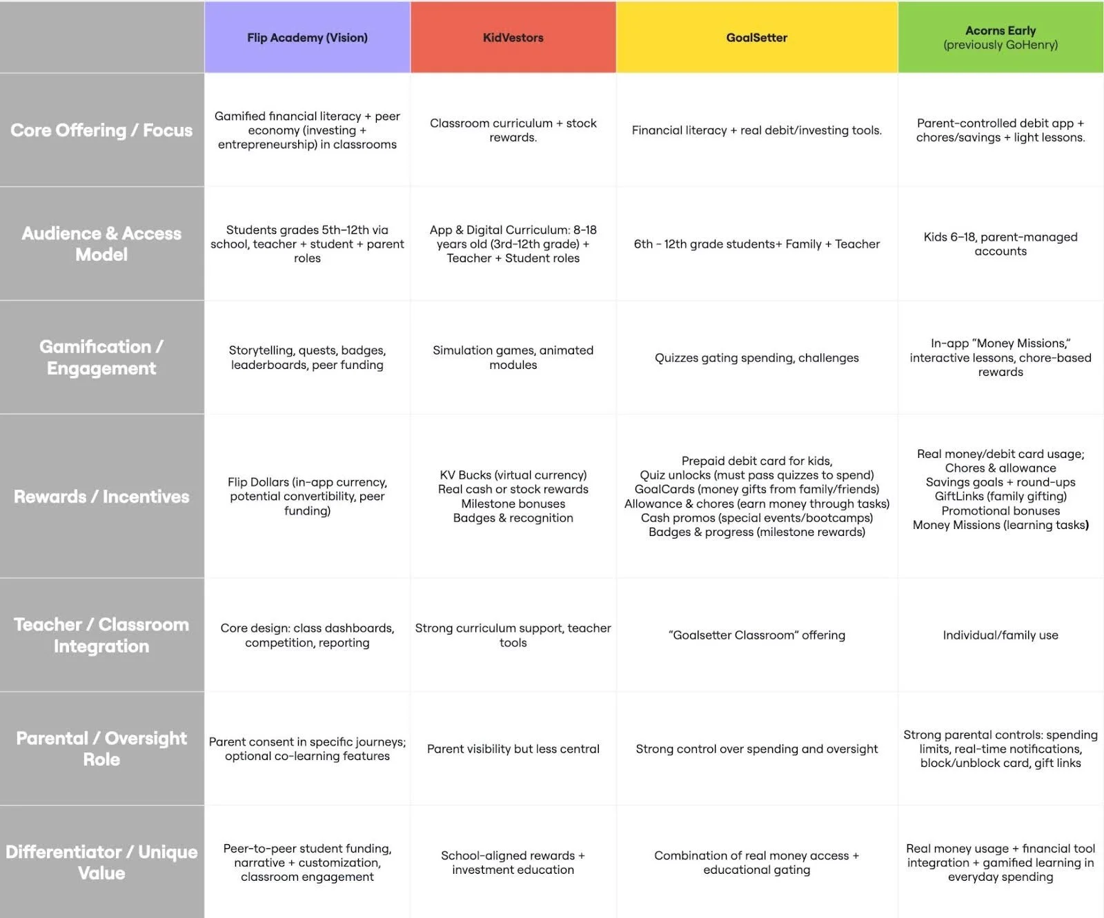Understanding competition was another big thing. While we know there are some competitors that teaches financial literacy, we also had to factor in how a young user would spend their time.